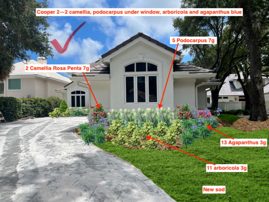 Trudy can offer multiple services to fit your budget. Everything from a 45 minute consultation, an email scope of work consultation, a picture rendering of your home and landscape ideas with labeling and quantities needed, to a full CAD design to present to Associations for approval.